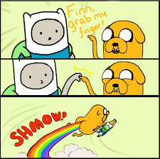 Jake: Perro compañero de finn que proviene del Area 51, tiene la habilidad de transformar su cuerpo en varias cosas como consoladores, condones, pistolas, scooby doo, Tu, entre otros.